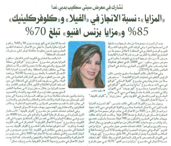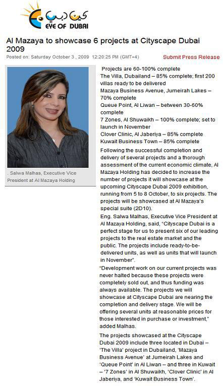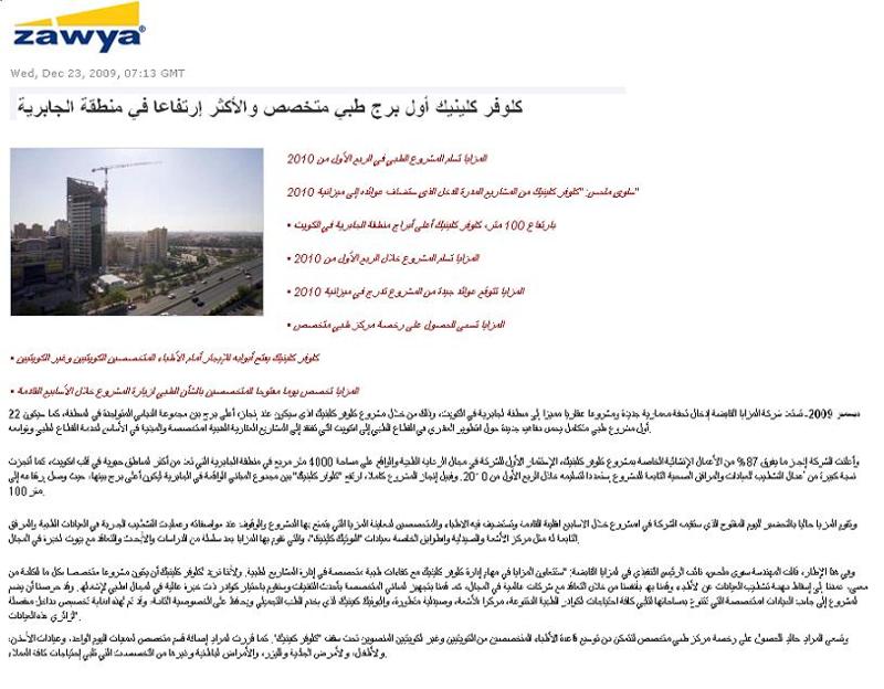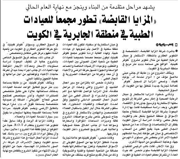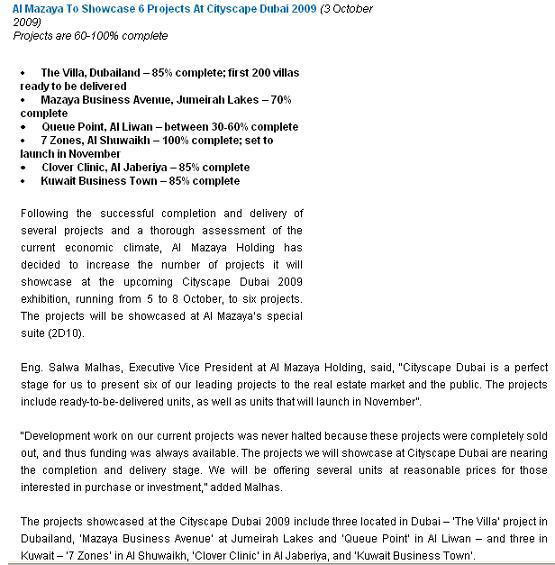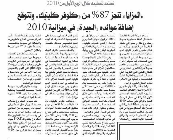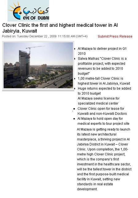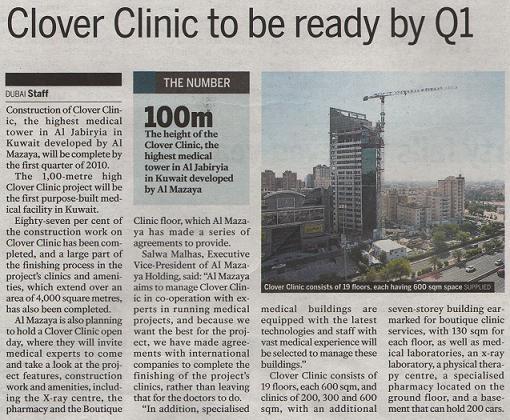 • Al Mazaya to deliver Clover Clinic in Q1 2010