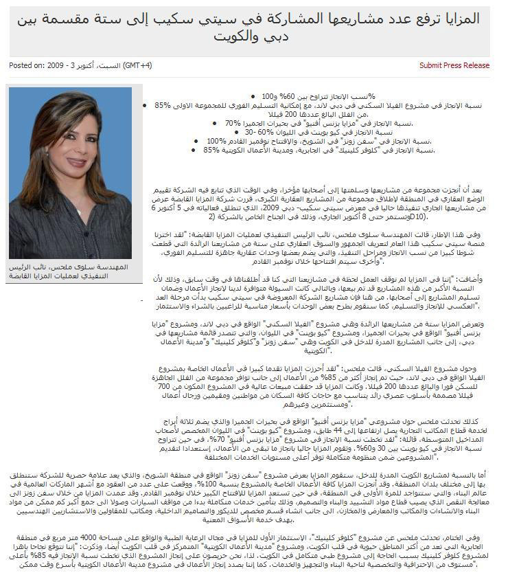 Describing the Al Mazaya's new website, Al Ghanim said "We made sure that the website is on par with the services it offers. The website is an effective means of communication with our clients, and it helps the client to easily get information on the company’s projects. The website also plays an important role in the field of marketing and sales, as well as offers an effective way to attract new clients".
